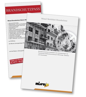 Missel bietet mit dem Brandschutzpass, dem Merkblatt Brandschutz und der entsprechenden Seminarreihe unterstützende und kostenlose Informationsquellen. Dort erhalten Installateure und Planer neben Details zu den rechtlichen Grundlagen alle erforderlichen Hinweise zur brandschutztechnisch sicheren und fachgerechten Abschottung von haustechnischen Rohrleitungen bei der Durchführung durch Bauteile. Bei darüber hinausreichenden Fragen stehen technische Service-Hotlines, wie die von Kolektor Missel Insulations, kostenlos zur Verfügung.