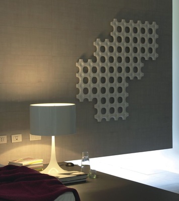 Der in Amsterdam lebende Designer Satyendra Pakhalé ist für seine außergewöhnlichen Entwürfe bekannt, und daher sieht seine Sicht von einem Heizkörper auch anders aus als die bekannten. Kernstück der Produktfamilie ist ein 12 x 24 cm großes Modul aus Aluminium, das individuell in der Fertigung zusammengesteckt wird. Die Bandbreite der sich daraus ergebenden Möglichkeiten reicht von klaren, geometrischen Formen wie Rechteck oder Quadrat bis hin zu skulpturalen und abstrakten Formen, die dem Heizkörper die Anmutung eines eigenständigen, expressiven Möbelstücks geben. add-On gibt es als hydraulische und als elektrische Version. Bei der hydraulischen Version befindet sich das Ausgleichsventil außerhalb des Heizelements: Es ist in einen speziellen Block eingebaut, der in bis zu sechs Metern Entfernung von der Heizung aufgestellt werden kann.