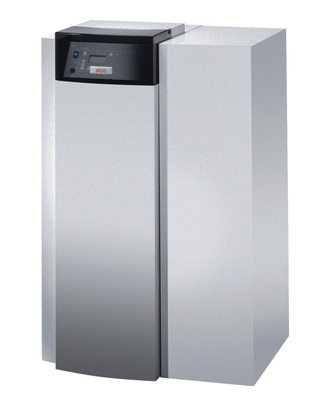 Dank einer maximalen Leistung von 120 kW verfügt der Gas-Brennwertkessel Trigon L über genügend Reserven, um auch größere Objekte wie Wohnanlagen oder gewerblich genutzte Gebäude mit Heizwärme zu versorgen. Herzstück von Trigon L ist ein Edelstahlwärmetauscher, der aus zwei übereinander angeordneten zylindrischen Kammern besteht. Die obere Kammer ist so konstruiert, dass sie durch das anfallende Kondensat selbsttätig gereinigt wird. Die elektronische, witterungsgeführte Regelung ist für die Einbindung weiterer Heizkreise vorbereitet.