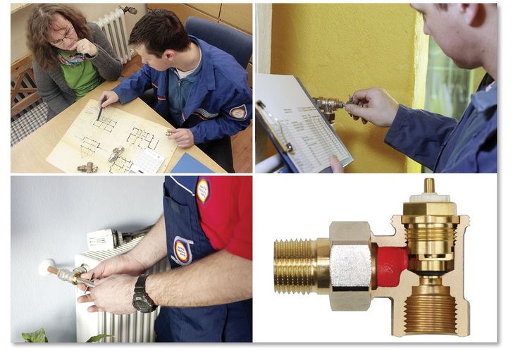 - die Voreinstellung der vorhandenen Thermostatventile,