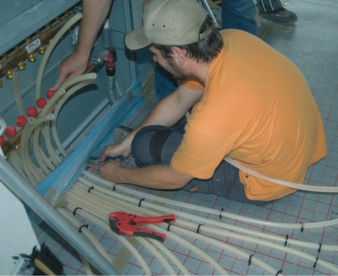 – Energieverteilung: Roth Tacker-System Fußbodenheizung (35/28 °C)