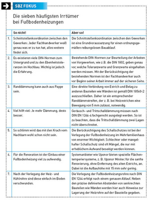 Zu warm, zu kalt, zu träge, schlecht regelbar, dicke Füße, gerissene Fugen und mehr. Es gibt sie immer noch, die Vorurteile gegenüber der Fußbodenheizung. Diese als solche zu entlarven setzt allerdings voraus, dass das fertige Produkt im Betrieb vom Gegenteil überzeugt. Eine Fußbodenheizung ist viel mehr als nur Rohre in den Boden einbringen. Um sich später über zufriedene Kunden freuen zu können, müssen die Vorgaben der Normen umgesetzt und die Arbeit aller beteiligten Handwerker koordiniert werden.