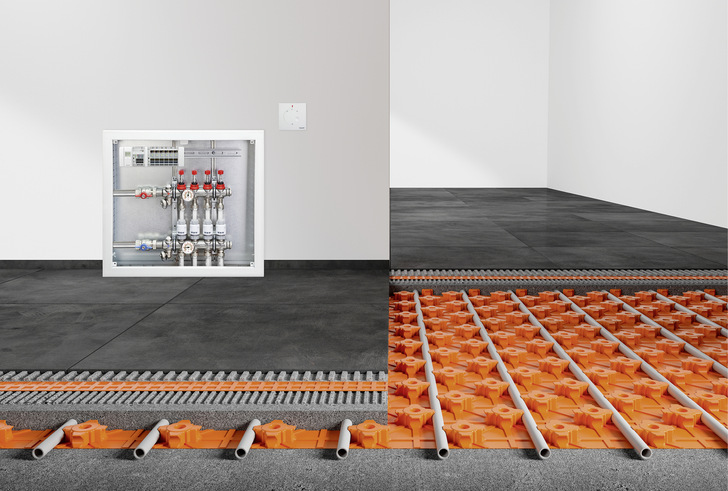 Das System beinhaltet alle Komponenten für den Bau einer reaktionsschnellen, energiesparenden Fußbodenheizung, die sowohl in Neubauten als auch bei Renovierungen schnell eingebaut werden kann.