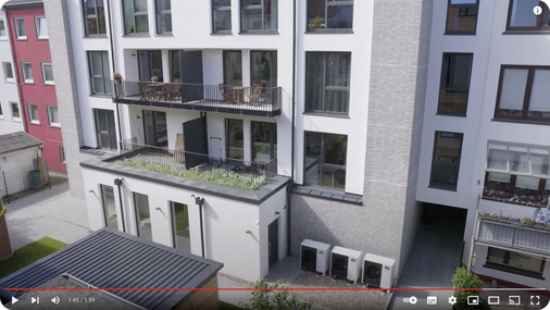 Darüber hinaus ist ein Pufferspeicher in das Anlagenkonzept eingebunden, der die Wärme speichert, bis sie abgerufen wird und auch zur Überbrückung von Sperrzeiten des Stromversorgers genügend Wärme liefert. Gleichzeitig stellt der Pufferspeicher Energie für die Abtauung der Außenmodule im Winter bereit. Das Mehrfamilienhaus verfügt über Fußbodenheizungen, die über ein dynamisches Ventil für den automatischen hydraulischen Abgleich voreingestellt ist und über Einzelraumregler individuell gesteuert werden können.