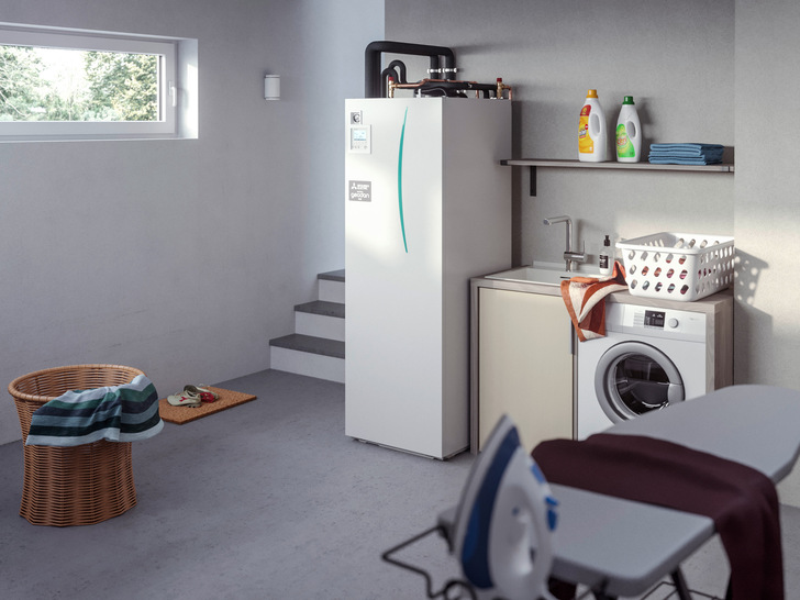 Bei dem System kommt das Kältemittel R32 zum Einsatz. Neben der vollintegrierten Hydraulik und dem Kältemodul enthält Ecodan Geodan einen 170 Liter fassenden Warmwasserspeicher. Alle für den Betrieb erforderlichen Komponenten sind in dem kompakten Gehäuse untergebracht. Für die leichte Einbringung und den Transport lässt sich das Kältemodul zudem mit wenigen Handgriffen entfernen und separat befördern. Alle Medienanschlüsse sind auf der Oberseite des Gerätes angeordnet. Mit Schnellverschlüssen für den wasserseitigen Anschluss wird die Montage zusätzlich erleichtert und beschleunigt.