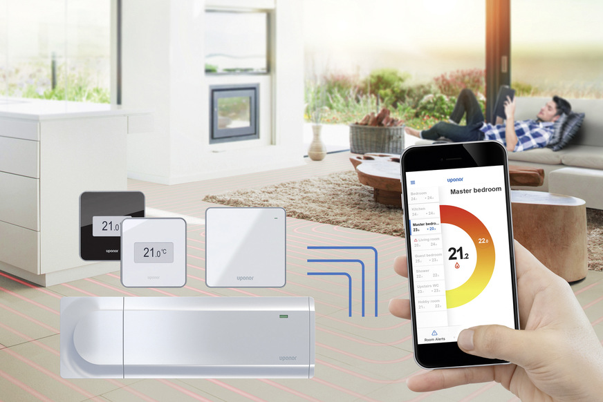 Möchte man die Raumtemperatur möglichst energieeffizient regeln, ist intelligente Heiztechnik, wie die Regelung Smatrix Pulse, eine wertvolle Unterstützung. Smarte Heizungen warnen Bewohner, wenn Räume permanent zu warm oder kalt sind und lassen sich per App von unterwegs steuern. Mit der App Uponor Smatrix Pulse kann der Verbraucher beispielsweise auch außer Haus auf die Uponor Cloud zugreifen und die Einstellungen seiner Regelung anpassen. So kann er etwa die Wärme- oder Kühlleistung runterfahren, wenn niemand zu Hause ist. Das System ist zudem kompatibel mit Alexa Voice Control, was die Steuerung zu Hause sehr komfortabel macht.