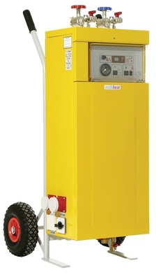 Nicht nur Planer und Heizungsfachhandwerker, die an großen Projekten der Heizungssanierung arbeiten, können von den Modernisierungshelfern profitieren. Gerade die Heizkesselerneuerung im Einfamilien- oder Mehrfamilienhaus, kann mit mobilen Elektroheizmobilen mit 3 bis 40 kW Leistung leicht umgesetzt werden. Die Geräte können Modernisierungshemmnisse beseitigen, die vielleicht mit dem Verzicht auf Wärme und Warmwasser beim Kunden vorhanden sind. Und das kann sich auch für den Handwerker rechnen: Er führt seine Arbeiten in Ruhe durch, ohne Einschränkungen für den jeweiligen Kunden, und kann eine Zusatzleistung abrechnen, die einfach über den Fachgroßhandel zu beziehen ist. Auch Modernisierungen bei frostigen Temperaturen lassen sich so problemlos umsetzen, was zur gleichmäßigeren Abwicklung der Aufträge führen kann und vielleicht den vollen Terminkalender nach der Heizsaison entzerrt. Für die Estrichaufheizung stehen spezielle Modelle mit automatischen Aufheizprogrammen (für Belegreifheizen und Funktionsheizen) nach DIN 1264-4 zur Verfügung und auch Warmwasserbereiter-Ausführungen sind vorhanden. Alle Geräte der neuen gelben Produktserie sind zudem zusätzlich mit einer extra Frostschutzsicherung ausgerüstet.