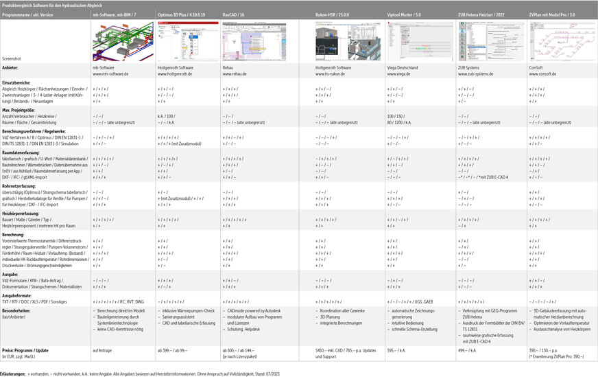 Bei den Softwarepreisen, die – je nach Ausstattung und erforderlichen Basis- oder Zusatzprogrammen – zwischen 300 und 5500 Euro liegen, sollten auch jährliche Folgekosten für Updates und Upgrades berücksichtigt werden. Kostenfrei sind DanBasic von Danfoss sowie zwei Excel-Tools der Ostfalia Hochschule (www.delta-q.de/projekte/dbu-optimus/#Hilfen).