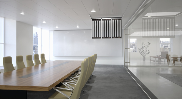 Mit Zehnder Fleximo aktivierte Decken nutzen das Strahlungsprinzip zum Beheizen und Kühlen von Räumen und zeichnen sich durch ihre hohe Energieeffizienz aus. Von warmem Wasser durchströmt, geben sie ihre Energie überwiegend in Form von Infrarotstrahlung an die Umgebung ab, die sich erst beim Kontakt mit dem menschlichen Körper oder Gegenständen in behagliche Wärme umwandelt. So kann die Raumlufttemperatur beim Heizen mit aktivierten Decken um bis zu drei Kelvin geringer und beim Kühlen entsprechend höher als bei gewöhnlichen Wärmeverteilungssystemen gehalten werden. Das Strahlungsprinzip birgt neben seinen Energieeinsparungspotentialen auch vielfältige Vorteile für Gesundheit und Wohlbefinden. So herrscht keinerlei Zugluft, es kommt zu keinen Staubaufwirbelungen und die schonende Heiz- und Kühlfunktion hat ein besonders behagliches Temperaturempfinden zur Folge.