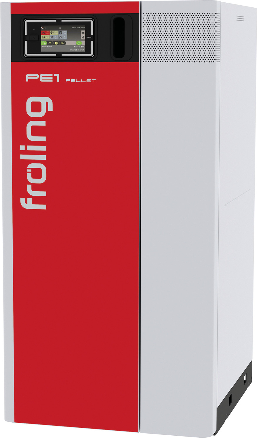 Der Pelletskessel PE1 Pellet mit einer Nennwärmeleistung von 7 bis 35 kW besticht durch seine kompakte und modulare Bauweise. Das Platzwunder überzeugt mit einer Grundfläche von nur 0,38 m² (7 und 10 kW) und einem Gewicht von unter 180 kg. Zusätzlich zum minimalen Platzbedarf punktet der PE1 Pellet mit äußerst leisem Betrieb und hohem Komfort, niedrigen Emissionen und ge-