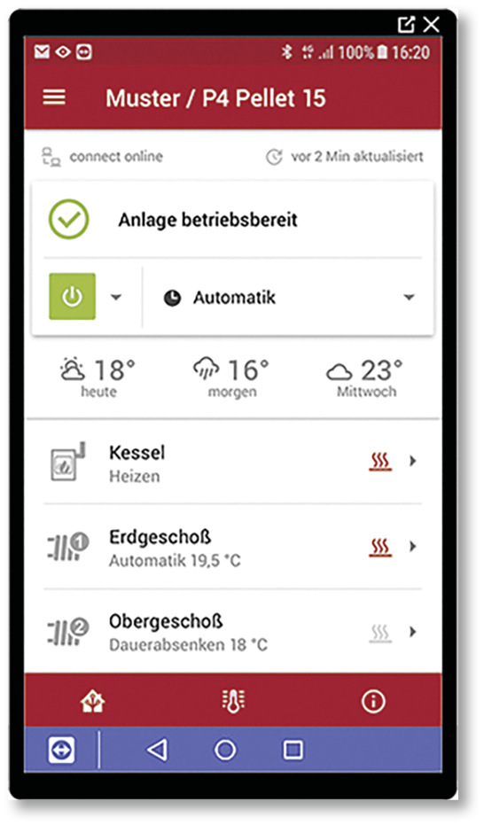 In der kompakten Übersicht können zudem mehrere Anlagen integriert werden. Dies ist besonders übersichtlich und komfortabel, wenn man mehrere Anlagen besitzt oder auch als Installateur oder Hausverwalter zur Bedienung/Überwachung mehrerer Heizkessel berechtigt ist. Der Benutzer sieht auf einen Blick, ob alle Anlagen einwandfrei laufen.