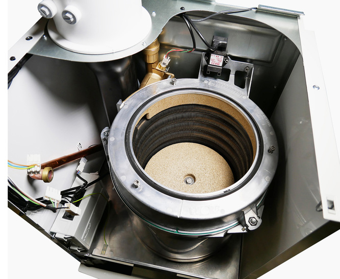 Vom Brennkammerdeckel bis zur Kondensatwanne liegt der Fokus bei allen Komponenten auf robusten, langlebigen Konstruktionen und Werkstoffen, die sehr widerstandsfähig gegen Korrosion sind. Die für diesen Leistungsbereich optimierten, robotergeschweißten V4A-Rippenrohr-Wärmetauscher verfügen über die 7-fache Oberfläche im Vergleich zu Glattrohr-Wärmetauschern. Das bedeutet: minimale Materialbelastung auch bei hoher thermischer Beanspruchung.