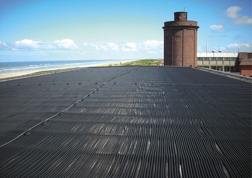 Auch in anderer Hinsicht musste der Installationsbetrieb das System genau an das Projekt anpassen. So musste er beispielsweise einplanen, dass die Insel Juist häufig von Stürmen heimgesucht wird. „Die Stürme darf man hier nicht unterschätzen. Die Konstruktion des Absorbers besteht deswegen aus einem robusten Stecksystem mit einzelnen Rippenrohren, die dem Wind keine Angriffsfläche für Auftrieb geben und mit am Dach befestigten Klammern zusätzlich gesichert sind“, sagt Thomas Lange. Da die Absorberanlage unbedeckt ist, hat sie keine Energieverluste durch aufliegende Glasscheiben. Zudem hat diese Lösung einen erheblichen Kostenvorteil. Mit Röhrenkollektoren hätte das Projekt etwa das Vierfache gekostet. „Wir arbeiten seit fast 25 Jahren mit Absorbersystemen. Solarthermie gewinnt zunehmend an Bedeutung, weil sich ihre Anwendungsbereiche immer stärker ausweiten, insbesondere in Kombination mit Wärmepumpen“, so Lange.