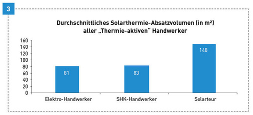 - Die Thermie-aktiven Solarteure haben ein überdurchschnittliches Absatzpotenzial von 148 m² pro Jahr. Bei ihnen macht der Thermie-Anteil am Gesamtumsatzes durchschnittlich 57 % aus.