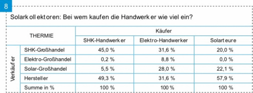 Beim Beschaffungsverhalten der Handwerker bezüglich Kollektoren, Solarstationen und Speicher ergab sich folgendes Bild: