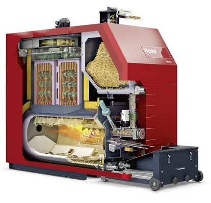die vollautomatische Vakuum-Pellet-Befüllung mit Vorratsbehälter im Heizkessel,