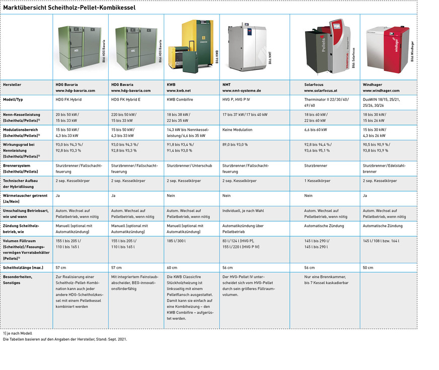 Auch wenn wir in der nachfolgenden Marktübersicht nur das Volumen des jeweiligen Vorratsbehälters für Pellets am Gerät von den Herstellern abgefragt haben, sollte klar sein, dass sich die Pelletsysteme natürlich auch mit allen gängigen Speicherkonzeptionen und Austragungssystemen am Markt kombinieren lassen (z. B. Bunkersysteme, Silolager, Schnecken- oder Saugsysteme).