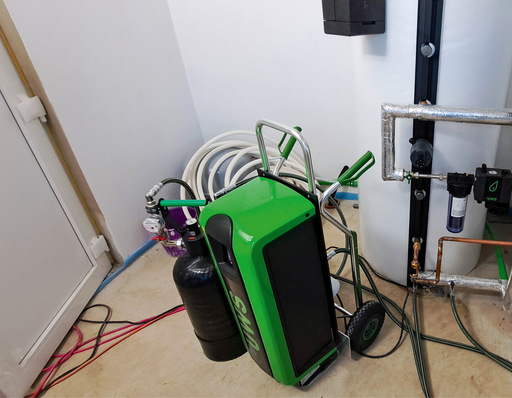 Zusätzlich zur Heizlast wurde der erforderliche Volumenstrom für die vorhandenen Heizkörper bei einer Vorlauftemperatur von maximal 45 °C ermittelt. Das Ziel der Auslegung war, die Wärmepumpe möglichst effizient über lange Zeiträume im effizienten Teillastbetrieb zu betreiben, daher fiel die Wahl auf eine Wolf CHA-16/20.