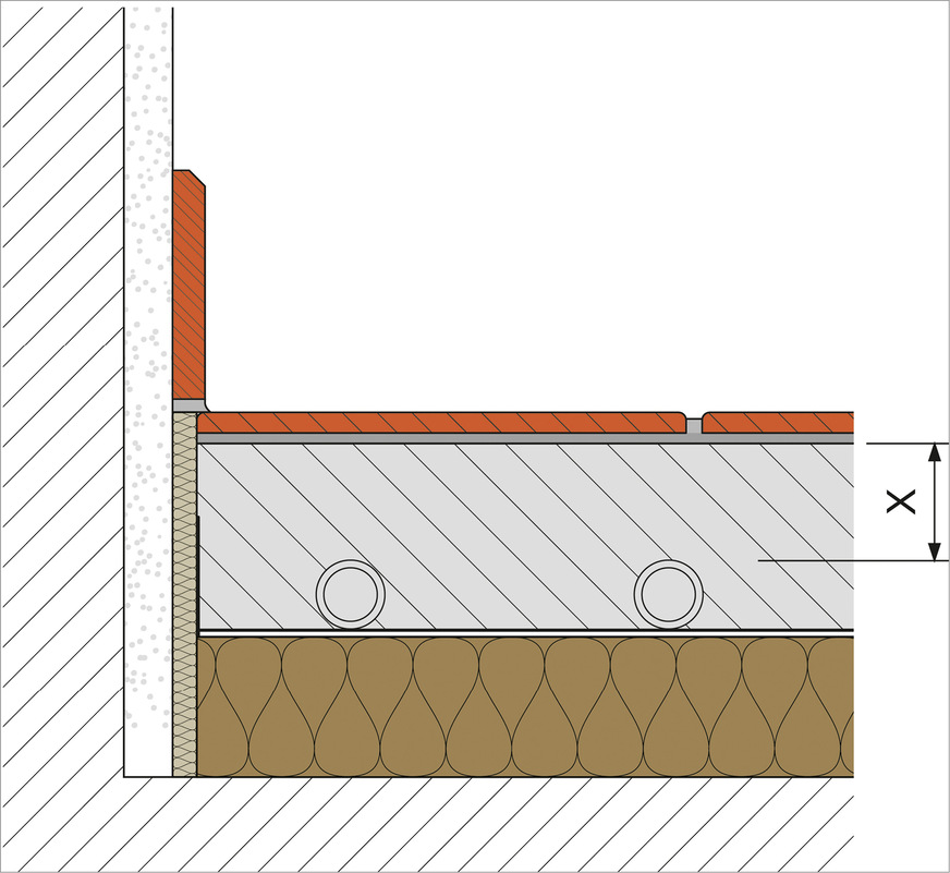 Rohrüberdeckung x = 30 mm mit Knauf Fließestrich FE Eco