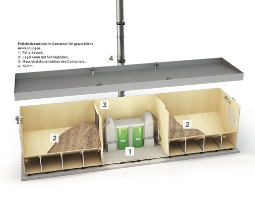 Nicht zuletzt beeindruckte Höhn der enorm geringe und damit effiziente Installationsaufwand der Pelletheizung. Die kompakte Heizzentrale wurde komplett ausgestattet mit zwei Pelletkesseln und zwei Pelletlagerräumen mit je 7,5 t Kapazität auf einem Tieflader angeliefert und konnte platzsparend direkt neben der Produktionshalle mit einem Kran aufgestellt werden. Lediglich Warm- und Kaltwasseranschlüsse mussten gelegt sowie der mitgelieferte Edelstahl-Schornstein parallel zum Gebäude hochgezogen werden. „Alles in allem ein Installationsaufwand von maximal zehn Stunden“, berichtet der Florida-Eis-Geschäftsführer. „Dank der schnellen Aufstellung und der kompletten Ausstattung der Heizzentrale konnten wir die Heizung von einem Tag auf den nächsten in Betrieb nehmen. Seitdem läuft sie störungsfrei. Das Alltagshandling der Anlage ist denkbar einfach. Lediglich der Aschebehälter muss etwa einmal pro Monat entleert werden, was nicht mehr als fünf Minuten in Anspruch nimmt und sauber abläuft“, erklärt Höhn.