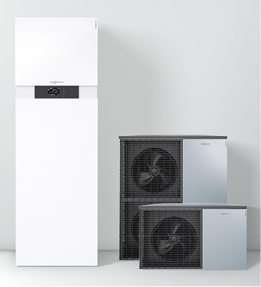 Mit der Luft-Wasser-Wärmepumpe Vitocal 222-A bietet Viessmann eine besonders platzsparende Lösung für die nachhaltige Heizung, Kühlung und Trinkwassererwärmung an. Das in Monoblock-Bauweise ausgeführte Kompaktgerät ist mit Heizleistungen zwischen 2,3 und 12 kW vor allem für Einfamilienhäuser geeignet. Die Inneneinheit integriert einen 220-l-Speicher-Wassererwärmer und begnügt sich mit einer Aufstellfläche von 0,5 m². Die Außeneinheit beinhaltet den kompletten Kältekreis und wird über wassergefüllte Verbindungsleitungen angebunden.