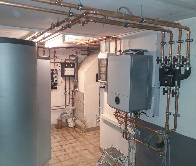 Zusätzlich verbaute er einen LS-Schalter in einer Unterverteilung im Heizraum, schloss alle Komponenten im Elektro-Zählerschrank an und integrierte das System in die von ihm installierte PV-Anlage inklusive Batteriespeicher. Von dieser Schnittstelle aus konnte mit der Elektroinstallation für die neue Heizungsanlage im Heizraum begonnen werden.