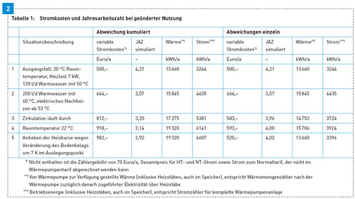 Um im Vorfeld die Jahresarbeitszahl und die Betriebskosten realistisch prognostizieren zu können, müssen die Nutzungsrandbedingungen exakt festgelegt werden. Im Folgenden werden Konsequenzen aufgezeigt, wenn nach der Auslegung und Ausführung einer Wärmepumpenanlage ein höherer Bedarf bzw. höhere Komfortvorstellungen abgefordert werden.