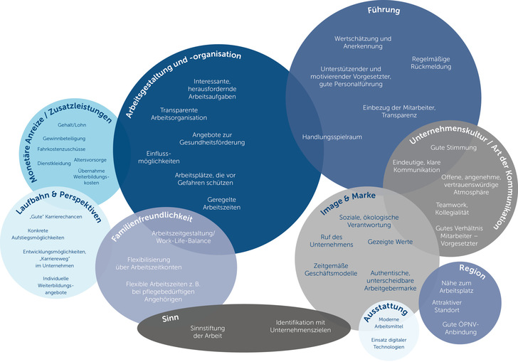 Je größer der Kreis, desto größer die Bedeutung eines Merkmals für die befragten Arbeitnehmer.