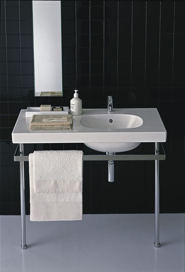 WC-Sitz mit Deckel, verchromte Handtuchhalter und Untergestell, kombinierbar mit Waschtisch 70 cm oder Ablagenwaschtisch 100 cm