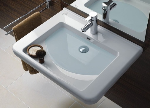 Die Serie für Generationenbäder hilft, persönliche Freiräume zu erhalten und auch bei eingeschränkter Beweglichkeit unabhängig von fremder Hilfe zu bleiben. Die gemäß DIN unterfahrbaren Waschbecken erlauben Körperpflege auch sitzenden Nutzern. Das breite Innenbecken bietet Raum, um den gesamten Unterarm im Wasser eintauchen zu können. Softe Radien und gerade Flächen bieten eine Armauflage und dienen auch als Abstützbereiche. Das Innenbecken ist je nach Bedarf mit zwei Wasserebenen nutzbar. Bei kompletter Füllung steht ein großzügiger Waschbereich zur Verfügung. Wird das Becken nur hälftig gefüllt, entsteht zusätzliche Ablagefläche für Schwamm und Waschlappen. Die Aufkantung an der Wand kann als Spiegelaufsatz genutzt werden. Damit ist es Kindern oder sitzenden Nutzern möglich, sich im Spiegel zu betrachten.