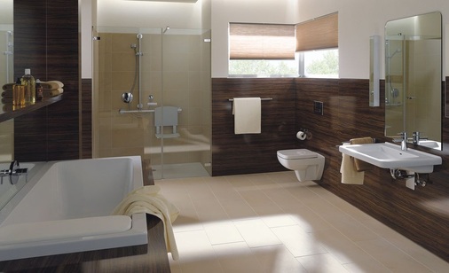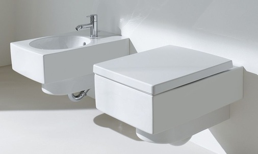 Die Waschbecken sind in drei Breiten mit einer einheitlichen Ausladung von 525 mm verfügbar. Die Wand-WCs gibt es als Tief- und Flachspülversion mit einer Komfortbreite von 400 mm und 700 mm Ausladung. Ergänzt wird das Sortiment durch ein breiteres Tiefspül-Stand-WC mit einer Keramikhöhe von 460 mm. Alle WC-Variationen weisen rutschhemmende Fasen für die WC-Sitze auf. Komplettiert werden die WCs durch spezielle Sitze bzw. Sitzringe. Stabilität sichert die breitere Sitzbefestigung auch schwergewichtigen Personen oder Rollstuhlfahrern, die seitlich auf die WCs übersetzen können. Alternativ gibt es die WC-Sitze auch mit Absenkautomatik. Für den Objektbereich sind Sitzringe ohne Deckel erhältlich.