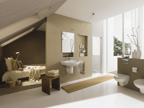 Virto ist der Virtuose unter den Keramag-Bad-Serien und schafft mit seiner umfangreichen Produktpalette Raum für innovative Einrichtungsideen. So umfasst das Sortiment außer den handelsüblichen Waschtischgrößen eine großzügige Variante in 85 cm Breite. Große Ablageflächen und ein geräumiges Becken bieten die Möbelwaschtische, die ebenso wie die anderen Waschtische mit Säule und Halbsäule kombiniert werden können. Sämtliche Sanitärobjekte sind mit einem verdeckten Überlauf ausgestattet. Das verdeckte Befestigungssystem für die Halbsäulen und Standmodelle sorgt für sicheren Halt und pflegeleichte Oberflächen. Die Bodenfreiheit von sieben Zentimetern bei allen Wandmodellen erleichtert außerdem eine Bodenreinigung. Die Serie wird ergänzt durch das Urinal Corso mit abnehmbarem Deckel und geringer Ausladung.