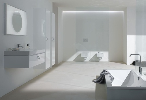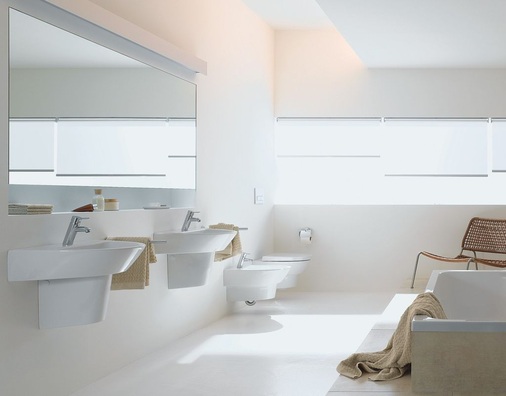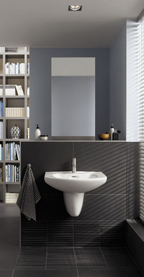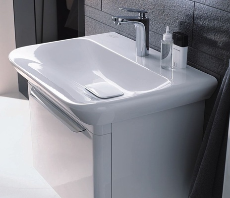 Auch die schlichte Gestaltung des wandhängenden WCs und Bidets harmoniert. Auffällig sind die sanft geschwungene Seitengestaltung und die sich nach unten verjüngende Formgebung. Auch das Möbelprogramm, dessen softe Grundlinie sich sowohl bei den Objekten als auch bei den Griffen wiederfindet, setzt auf Formgebung und Funktionalität. Komplettiert wird die neue Badserie durch zwei in Form und Funktion abgestimmte Wannen. Das Programm umfasst Waschtische, einen Doppelwaschtisch, Einbauwaschtische, Handwaschbecken, WC und Bidet, Möbelunterschränke, einen Hochschrank, Lichtspiegelelemente sowie die beiden Badewannen.