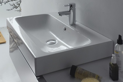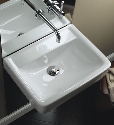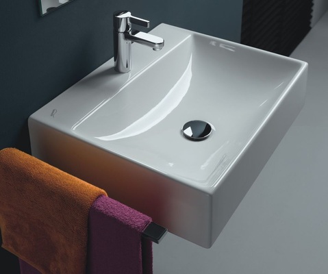 Mit der im rechteckigen Design gestalteten Serie Renova Nr. 1 Plan bietet Keramag auch im design-orientierten und attraktiven Preissegment für den Mietwohnungsbau sowie die öffentlichen und gewerblichen Sanitärbereiche die passenden Produkte. Die eckigen Plan-Waschtische zeichnen sich durch eine strenge Geometrie mit weicher Kummengestaltung und breitem Rand aus. Alle Waschtisch-Modelle können mit Halbsäule und Kerafix-Schnellbefestigung kombiniert werden. Die Waschtische können standardmäßig an der Wand befestigt oder auf einer Platte aufgelegt werden.