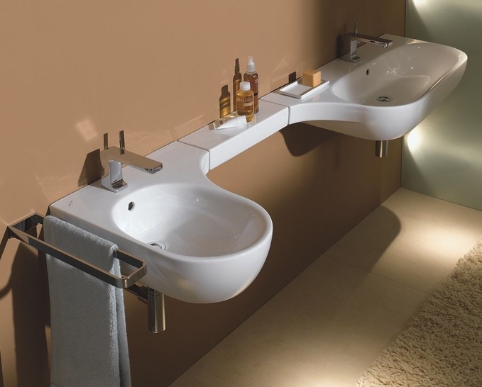 Preciosa II umfasst ein neues Handwaschbecken mit rechtsseitigem Hahnloch sowie Waschtische (mit Hahnloch und Überlauf), die mit seitlich angebrachten Handtuchhaltern ergänzt werden können. Zum Keramik-Programm gehört außerdem ein wandhängendes Tiefspül-WC, für das ein WC-Sitz mit Absenkautomatik angeboten wird und ein wandhängendes Bidet.