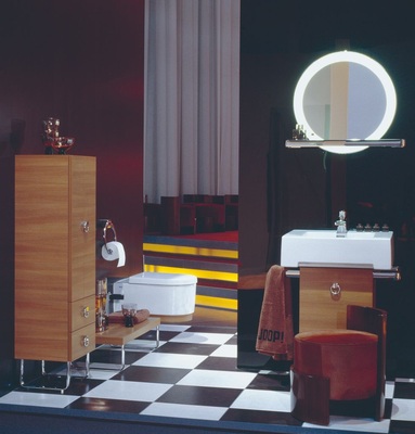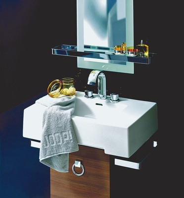 Modern Glamour – so beschreibt Joop! den Designanspruch, der zeitgemäße, moderne Formensprache mit Luxus verbindet. Die klare Silhouette mit starken Konturen zitiert aus dem Fundus der Bauhaus-Traditionen, opulente Details wecken Assoziationen an luxuriöse Hotelbäder, wertvolle Flakons oder Accessoires. Um den Joop!-Anspruch zu realisieren, hat Keramag eine Sanitärkeramik entwickelt, die durch großzügige glatte Flächen und hohe Materialstärken, kombiniert mit präziser Linienführung, eine hohe Wertigkeit vermitteln soll. Für die Armaturen mit dem charakteristischen Flachauslauf setzt Kludi einen im Markt bislang einmaligen Flachperlator ein. Alternativ zur Vollchromarmatur bringen Griffringe aus massivem Kristallglas farbige Akzente ins Bad. Koralle bestückt das Joop!-Bad mit einer neuen Ganzglasdusche, die durch ihre Transparenz besticht, akzentuiert durch materialbetonte Griffleisten. Formal klar gestaltete Badewannen in verschiedenen Abmessungen, wahlweise kombinierbar mit drei unterschiedlichen Whirlsystemen, komplettieren das Angebot. Das passende Möbelprogramm in weißem Lack, Nussbaum und Olive Hochglanz bietet neben klassischen Grundformen prestigeträchtige Einzelmöbel wie einen Spiegelschrank im Ganzkörperformat.