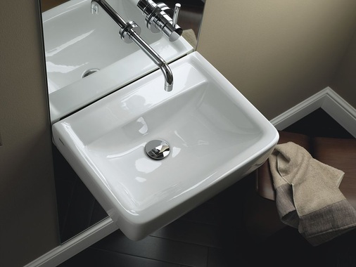 Mit der im rechteckigen Design gestalteten Serie Renova Nr. 1 Plan bietet Keramag auch im design-orientierten und attraktiven Preissegment für den Mietwohnungsbau sowie die öffentlichen und gewerblichen Sanitärbereiche die passenden Produkte. Die eckigen Plan-Waschtische zeichnen sich durch eine strenge Geometrie mit weicher Kummengestaltung und breitem Rand aus. Alle WaschtischModelle können mit Halbsäule und Kerafix-Schnellbefestigung kombiniert werden. Die Waschtische können standardmäßig an der Wand befestigt oder auf einer Platte aufgelegt werden. Der Möbelunterbau ist bei allen Waschtischen machbar. Vervollständigt wird Renova Nr.1 Plan durch zwei ebenfalls neue, formal abgestimmte Wand-WCs – als Tief- und Flachspüler – mit Sitz und Deckel, optional auch mit Absenkautomatik.
