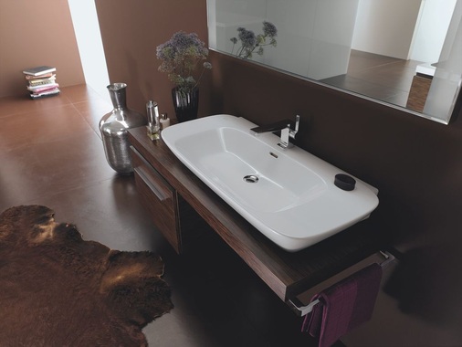 Die Serie umfasst ein umfangreiches Badmöbelprogramm. 47 cm tiefe Waschtischplatten, die bis zu einer Breite von 140 cm verfügbar sind, können mit allen Waschtischvarianten sowie den Waschtischunterschränken kombiniert werden. Für wohnliches Ambiente sorgen Seiten- und Hochschränke sowie eine luxuriöse Acrylwanne mit echtholzfurnierten Seitenpaneelen.