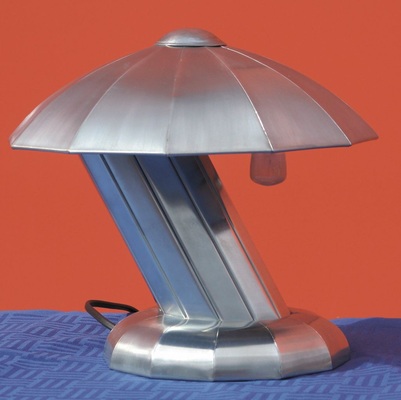 Bevor Marco Richter aus Bad Kissingen seine futuristisch anmutende Titanzink-Nachttischlampe ausknipsen konnte, um in angenehme Träume zu versinken, war viel Lot- und Falzarbeit zu leisten. Fuß und Lampenschirm bestehen jeweils aus zwölf konischen Teilen, der schräge Lampenständer aus zwölf Parallelogrammen. Die einzelnen Bauteile, deren Nähte von innen stumpf verlötet sind, wurden miteinander verfalzt. Den Schlusspunkt, oben auf der Lampe, bildet eine handgefertigte Rosette.