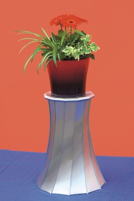Eine prima Lösung für rückenschonendes Gießen häuslicher Blumenpracht fand Tobias Bach aus Schweinfurt. Sein zwölfeckiger, im Uhrzeigersinn in sich gedrehter Blumensockel aus 0,7 mm starkem Titanzink bringt das Grünzeug auf ordentliche Höhe, damit sich der Pflanzenfreund nicht mehr bücken muss. Die einzelnen Scharen sind mit 3 mm hohen einfachen Stehfalzen verbunden, der obere Deckel wurde aus 1 mm dickem Zinkblech hergestellt. Das edelmatte Oberflächenbild entstand durch abschließendes Schleifen.