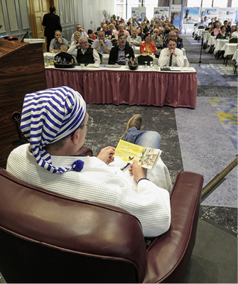 Stefan Bahlmann aus Barßel las aus dem Kinderbüchlein „Nur Installateure wissen, wie man Wasser bändigt“ vor. Darin wird kindgerecht über „das Heldentum“ des Anlagenmechanikers darstellt. Held des Buches ist in diesem Fall „Herr Bahlman“. Das von Andreas Buck (Text) und Hajo Schörle (Grafik) geschaffene Heftchen wird für jeden Betrieb „helditisiert“.