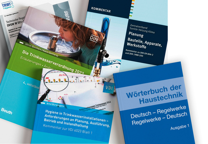 Weiter in einzelne Details geht dann die Spezialnormung des Vereins Deutscher Ingenieure (VDI) und des Deutschen Vereins des Gas- und Wasserfaches (DVGW), die sich mit konkreten, abgegrenzten Themen befasst, etwa mit den Aspekten der Hygiene bei Planung, Installation und Betrieb (Reihe VDI 6023) oder mit Legionellen, Pseudomonas & Co. (Reihe DVGW W 551).