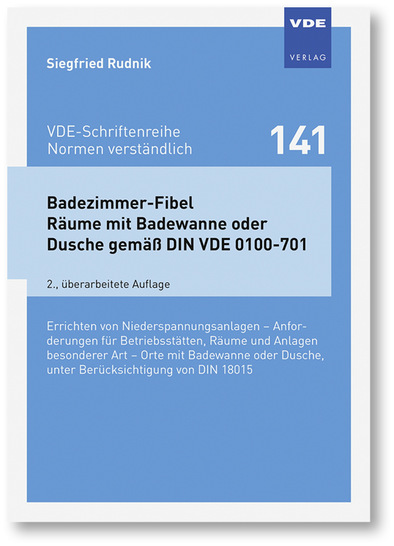 Die Verweildauer im Bad hat sich durch das Ambiente und das Vorhandensein von Medieneinrichtungen erheblich verlängert. Damit die dafür notwendigen Einrichtungen in einem Badezimmer installiert werden dürfen, müssen besondere Maßnahmen berücksichtigt werden, die über die ursprünglichen Anforderungen an die Elektroinstallation in Badezimmern hinausgehen. Die Neuerscheinung aus der VDE-Schriftenreihe „Badezimmer-Fibel: Räume mit Badewanne oder Dusche gemäß DIN VDE 0100-701“ bietet eine Darstellung der gültigen Normen und heutigen Anforderungen an die Elektroinstallation in modernen Badezimmern unter Berücksichtigung der Normen der Reihe DIN 18015 „Elektrische Anlagen in Wohngebäuden“.
