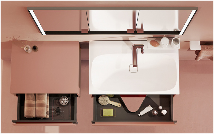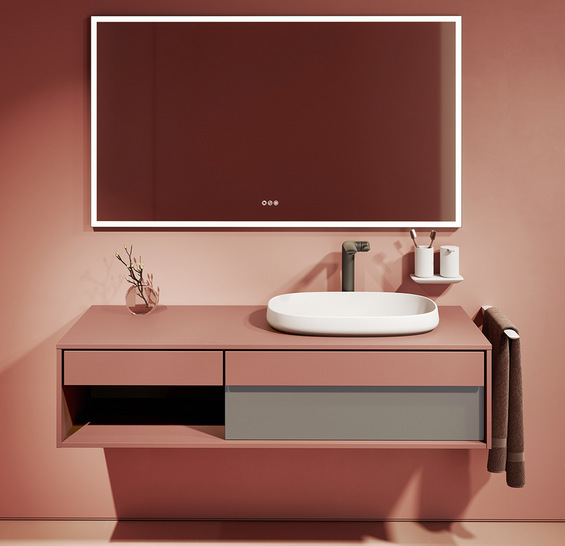 Die Produkte von For (entwickelt von Experten aus den Reihen von R + F und dem Designstudio Artefakt) erfüllen mit einer zeitgemäßen und modernen Ästhetik den Anspruch von designaffinen Kunden. Gefertigt in Europa, setzt der Anbieter auf langlebige und hochwertige Materialien. Die verschiedenen Badserien (aktuell sind es vier, die Bilder zeigen eine Waschtischanlage von Ovidis in Terracotta matt) werden sukzessive gelauncht. Sie unterscheiden sich durch eine jeweils eigene Formsprache. So passt sich die Marke den Design- und Wohnkonzepten unterschiedlicher Zielgruppen individuell an – vom Loft bis hin zum Studenten- oder Seniorenapartment. Dabei ist das Bad stets ein hochwertiger Rückzugs- und Wellnessort, der sich in den ganzheitlichen Einrichtungsstil einfügt. Eigene For-Kundenberater, die durch R + F geschult werden, stehen mit ihrer Erfahrung rund um Sanitärprodukte für alle Fragen zur Verfügung. Kunden profitieren bei der Bemusterung, der Bestellung und der Lieferung vom R + F-Serviceversprechen.