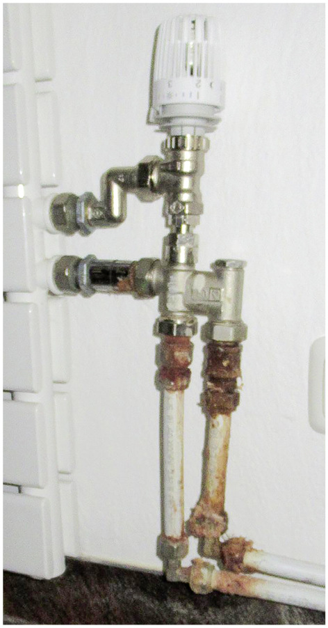 Ich habe mal wieder eine Kuriosität in puncto Heizkörperanschluss. Den hat wohl ein nicht so erfahrener Kollege so (siehe Bild) angebaut. Laut Kunde ist er nicht mal richtig warm geworden. Undicht war das Konstrukt vom ersten Tag an. Der Fachkräftemangel hat wohl zu dieser Ausführung geführt. Wir sollen das nun richten. Wir haben zunächst einmal ein Angebot für den Umbau erstellt.
