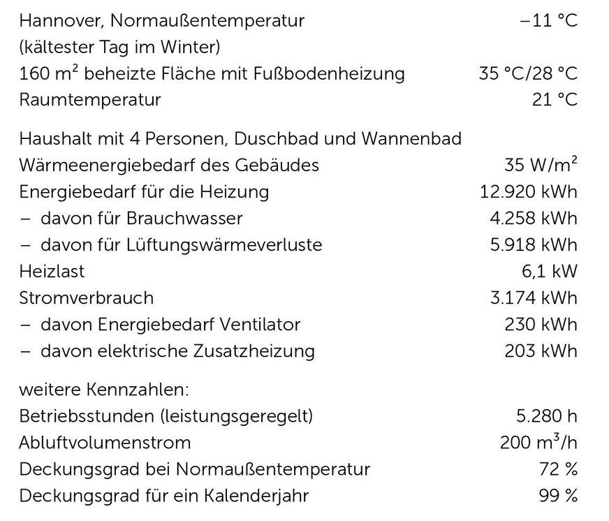 Es gilt, zuerst zu prüfen, welcher Lüftungsvolumenstrom für das Objekt erforderlich ist. Die Luftwechselrate im Gebäude wird dabei mit einem Wert von ca. 45 bis 50 % angenommen. Ein Gebäude mit 160 m² Wohnfläche und einer Deckenhöhe von 2,5 m erfordert einen Lüftungsvolumenstrom von 200 m³/h.