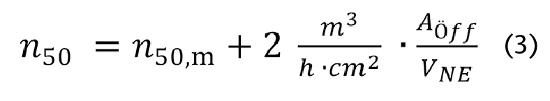 Wird die Gebäudedichtheit mit einer Messung bestimmt, kann eine rechnerische Korrektur für kleine Öffnungen erfolgen, die bei der Messung abgedichtet, bei bestimmungsgemäßer Nutzung aber offen sind: