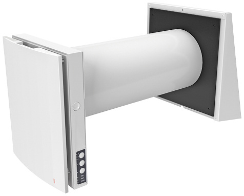 Der Gesetzgeber forciert den Einsatz von Wohnraumlüftungen mit Wärmerückgewinnung. Eine dezentrale Lösung bietet Schräder Abgastechnik jetzt mit dem AIR-DL 50 an. Da keinerlei Lüftungsleitungen im Haus erforderlich sind, können aufwendige Planungs- und Installationsarbeiten entfallen. Das Lüftungsgerät besteht aus einer Innenraumeinheit mit Frontplatte, dem Lüftungsrohr mit Schalldämm-Matte sowie einer Außenlüftungshaube. Zur Lüftungseinheit zählen ein Ventilator, ein Wärmetauscher sowie zwei Grobfilter für die Zuluft. Bei Nichtbetrieb der Anlagen schließen sich die Lüftungsklappen, sodass kein unkontrollierter Luftrückstrom entsteht. Auf der Fassadenseite schützt die Lüftungshaube vor dem Eindringen von Staub und Fremdkörpern. Die warme Raumluft wird während des Betriebs über den Wärmetauscher geleitet. Dabei wird der Luft die Wärme entzogen und an die gefilterte Frischluft übertragen. Eine zellulare Struktur vergrößert die Oberfläche des Keramik-Wärmetauschers. Das Unternehmen gibt für den AIR-DL 50 einen Wärmerückgewinnungsgrad von bis zu 90 % an. Die Be- und Entlüftung erfolgt mittels Axial-Ventilator mit reversierendem EC-Motor.