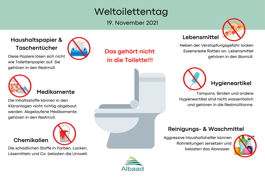 Deutsche verbringen bis zu drei Jahre ihres Lebens auf dem WC – und dennoch herrscht viel Unwissen zur Frage: Was darf in der Toilette entsorgt werden? Während Feuchttücher zu Verstopfungen der Abwasserrohre führen, ist zertifiziertes feuchtes Toilettenpapier durch die Weiterentwicklung des Materials in den vergangenen Jahren kein Problem mehr. Die Albaad Deutschland GmbH nimmt den Welttoilettentag am 19. November zum Anlass, mit dem weit verbreiteten Irrtum aufzuräumen. Der Aktionstag wird seit 2013 von den Vereinten Nationen organisiert und hat einen ernsten Hintergrund: Fast die Hälfte der Weltbevölkerung hat keinen Zugang zu funktionierenden, sicheren sanitären Anlagen.