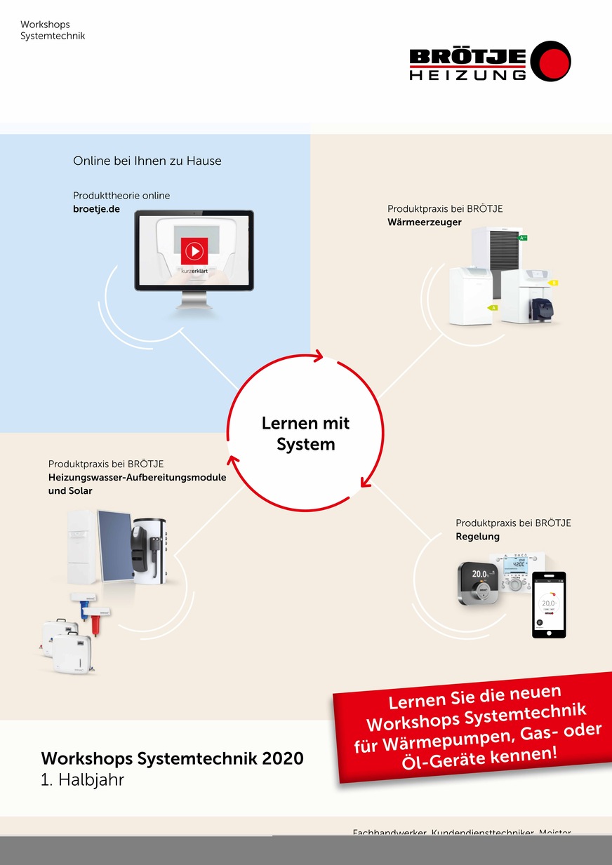 Die Termine für die Brötje-Schulungen im 1. Halbjahr 2020 stehen ab sofort unter broetje.de/Partnerlogin zur Verfügung. Das Programm ist umfangreich und bietet für jeden die richtige Weiterbildung. Sämtliche Themenfelder für Heizungs-Spezialisten, die mit Brötje Produkten arbeiten, werden behandelt:
